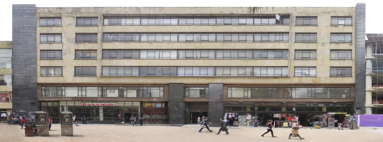 Inmueble de 7 pisos y sótano de parqueadero, paramentado en un predio medianero con forma irregular, cuyas dimensiones son: frente de 41 m y fondo de 25.87 m, logrando una proporción de 1 a 0.6 veces aproximadamente, con frente sobre la Av. Calle 13 (Av. Jiménez). La ocupación del predio se realiza a través de un volumen compacto con aislamientos posteriores, al que se accede a través de un hall central que conduce a las escaleras y ascensores. Los 2 locales que conforman la planta del primer piso tienen acceso independiente desde la calle; los niveles superiores albergan oficinas y servicios. La fachada consta de un primer nivel con recubrimiento en mármol y ventanas de piso a techo, sobre el que se dispone un volumen con revestimiento en piedra muñeca y vanos de ventana corrida horizontal, todo ello enmarcado por 2 volúmenes verticales con revestimiento en mármol; 2 volúmenes verticales con enchape de mármol enmarcan el acceso principal. El sistema estructural es de columnas, vigas y entrepisos de concreto, con cerramientos de muros de mampostería en ladrillo. Acabado interno de pañete y pintura. Cubierta plana en placa maciza de concreto. Escaleras en concreto y carpintería metálica.