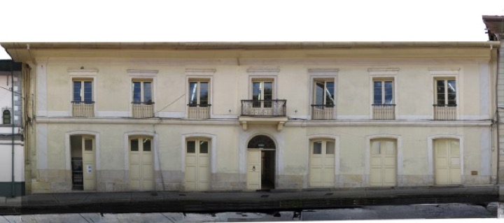 Inmueble de dos pisos paramentado en un predio medianero, cuyas dimensiones son 25.98 m de frente por 34.57 m de fondo, logrando una proporción de 1 a 1.3 veces aproximadamente, con frente sobre la Calle 8. La ocupación del predio se realiza a través de un volumen de patio lateral central en la parte posterior, junto a otro patio lateral que conecta con el inmueble colindante conocido como “Casas Gemelas”. Se accede a la edificación a través de un zaguán central junto al cual funciona la portería; tras un contraportón con calados de madera se llega al patio principal, con galerías apoyadas en pies derechos y en torno al cual se organizan varias oficinas pequeñas en el primer piso, dentro de las cuales está la oficina de correspondencia y archivo con acceso directo desde la calle; mientras que en el segundo piso se disponen oficinas más grandes como la de la dirección o la sala de juntas, cuyas galerías cuentan con elaboradas carpinterías de madera en puertas y barandas, incluyendo un cancel. La fachada consta de 2 pisos diferenciados por una cornisa y flanqueados por pilastras, con zócalo en piedra arenisca bogotana y remate en cornisa y alero entablerado de madera con canal metálica; en el primer piso cuenta con 7 vanos de acceso con arco escarzano y marco de realce; el central, con arco de medio punto. En el segundo piso cuenta con 7 vanos de puerta ventana con marco, cornisa y baranda de tribuna a ras de muro; el central, con balcón de tribuna en forjado de hierro sobre una repisa apoyada en ménsulas. El sistema estructural es de muros de carga en mampostería de ladrillo y adobe; entrepisos y escaleras en madera; cubierta a 2 aguas en teja de barro con estructura de madera. Los muros cuentan con revestimiento de pañete y pintura; los pisos son de cerámica.